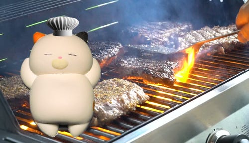 Today, Winky has taken on the role of master griller at a lively summer cookout.